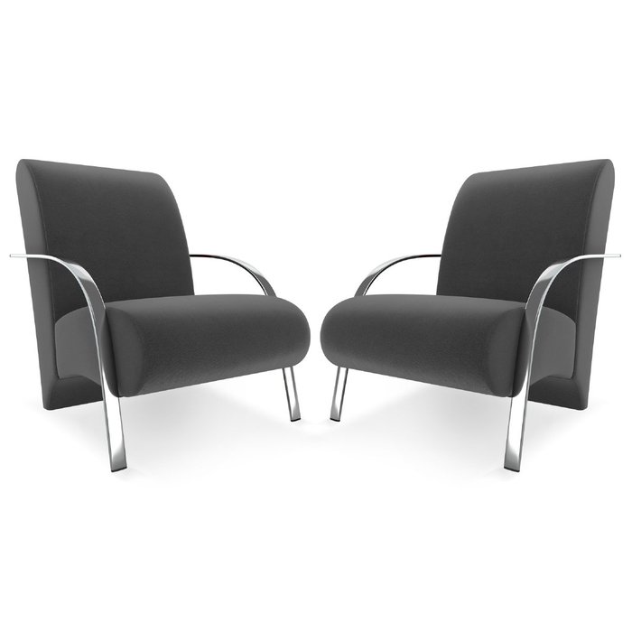 Kit 2 Poltrona Decorativa Olinda Para Sala Recepção com Braços Alumínio Grafite Suede Mamflex