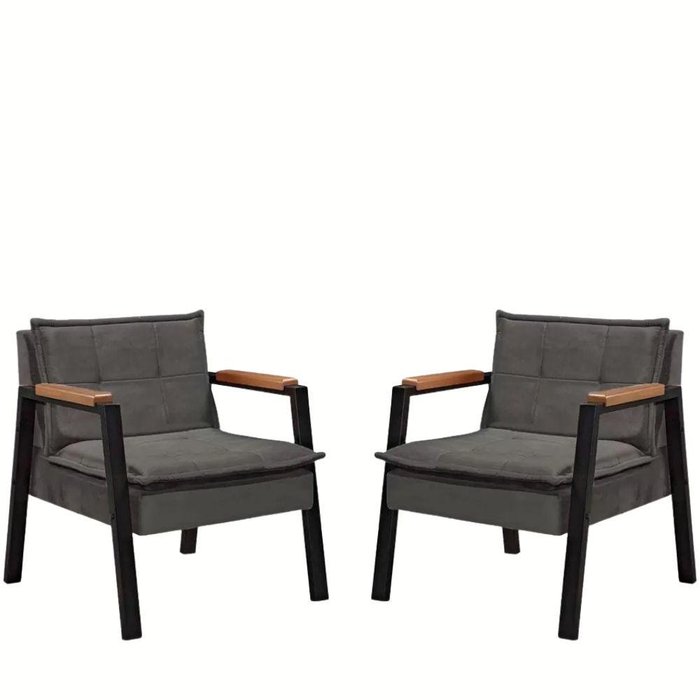 Kit 2 Poltrona Fortaleza Veludo Cinza Base em Metal Preto