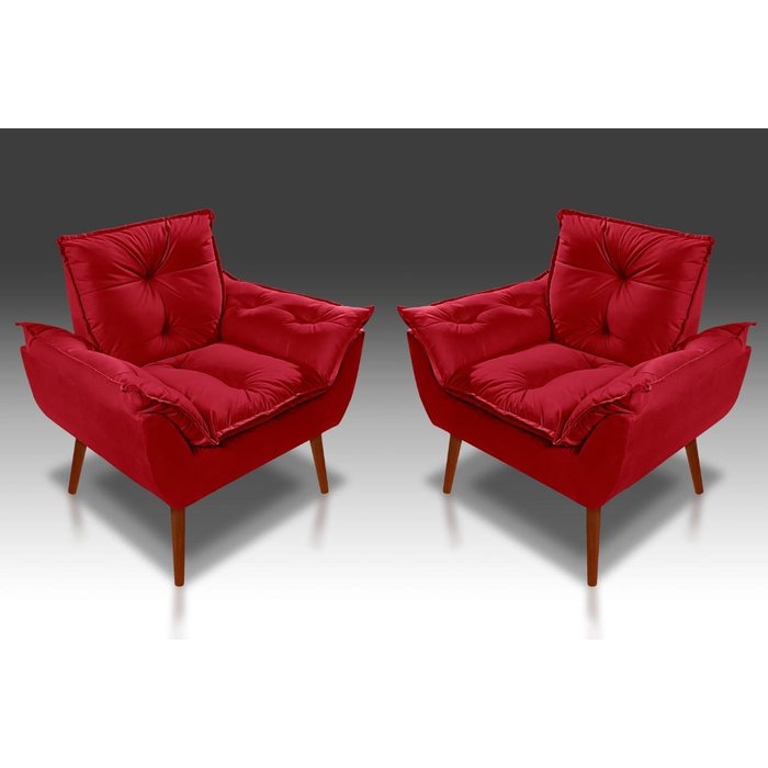 Kit 2 Poltrona Opala Dluxo Suede Vermelho- Rv Decora