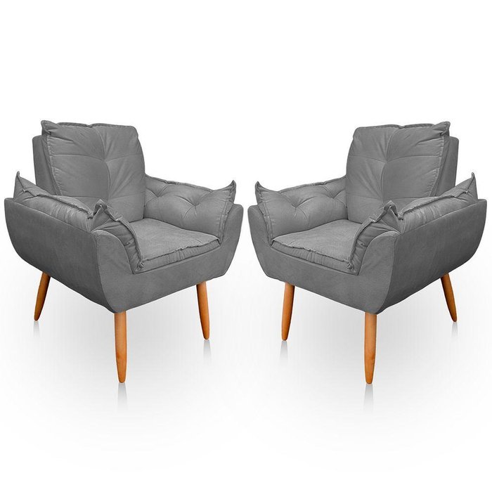Kit 2 Poltrona Opala para Sala e Quarto Suede Cinza