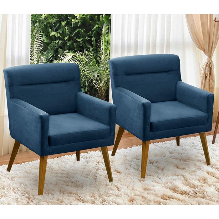 Kit 2 Poltrona Para Sala Decorativa Pérola Suede Azul Adonai Estofados Azul