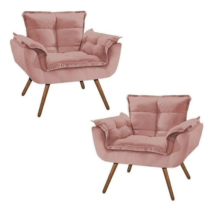 Kit 2 Poltrona Opala Rose Suede Decorativa Para Sala Escritório Biselos-decor