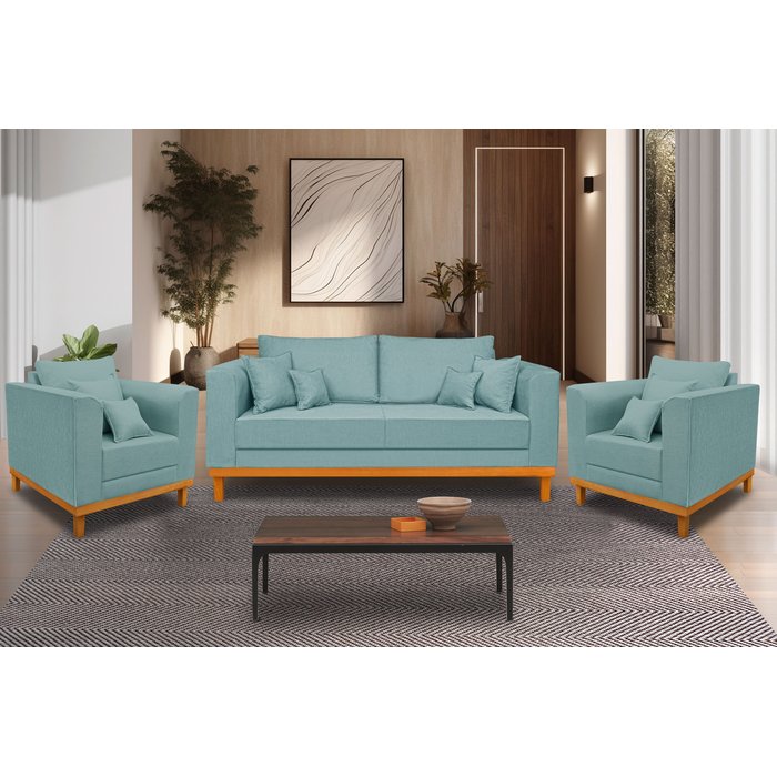 Conheça o Sofá Viena, modelo de referência em elegância e segurança. O Sofá Viena é um luxo e vai tornar o seu ambiente ainda mais lindo e aconchegante. Conta com almofadas no encosto para trazer maior conforto e também acompanha almofadas de decoração para dar aquele toque final de bom gosto e sofisticação. O seu design é incrível para todos os ambientes, sua base e pés de madeira trazem a sustentação necessária e o tecido de alta qualidade fazem dele a combinação ideal para o seu ambiente!