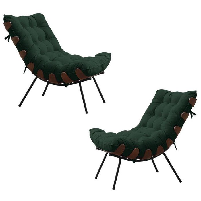Kit 2 Poltronas Abel Base de Madeira Preto Suede Verde