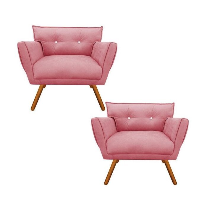 Kit 2 Poltronas Anitta Suede Rose com Strass Pés Palito Castanho Dmov