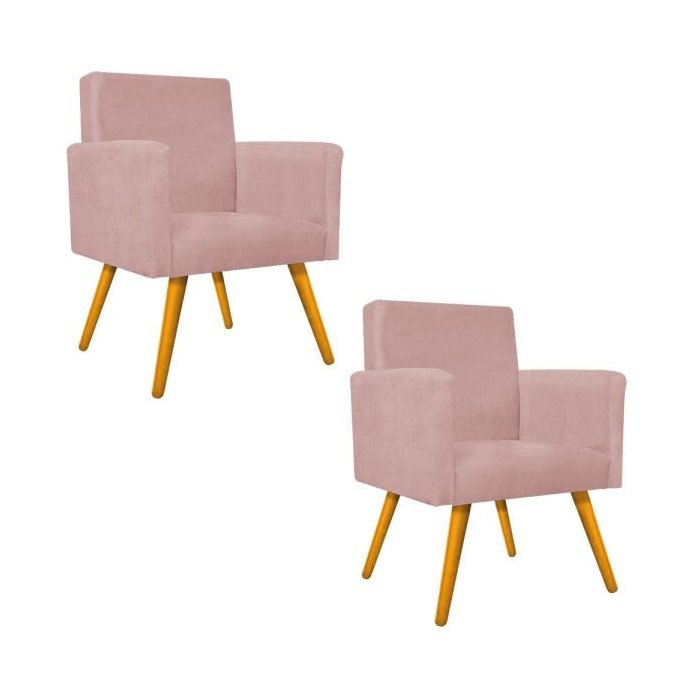 Kit 2 Poltronas Beatriz Palito Mel Suede Rosê - Doce Sonho Móveis