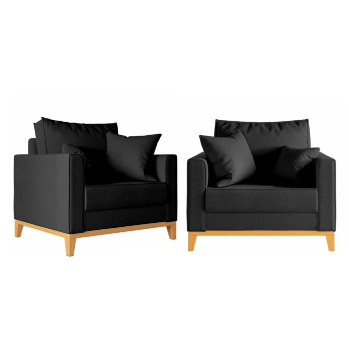 Kit 2 Poltronas Beny 80cm Base de Madeira Linho Preto