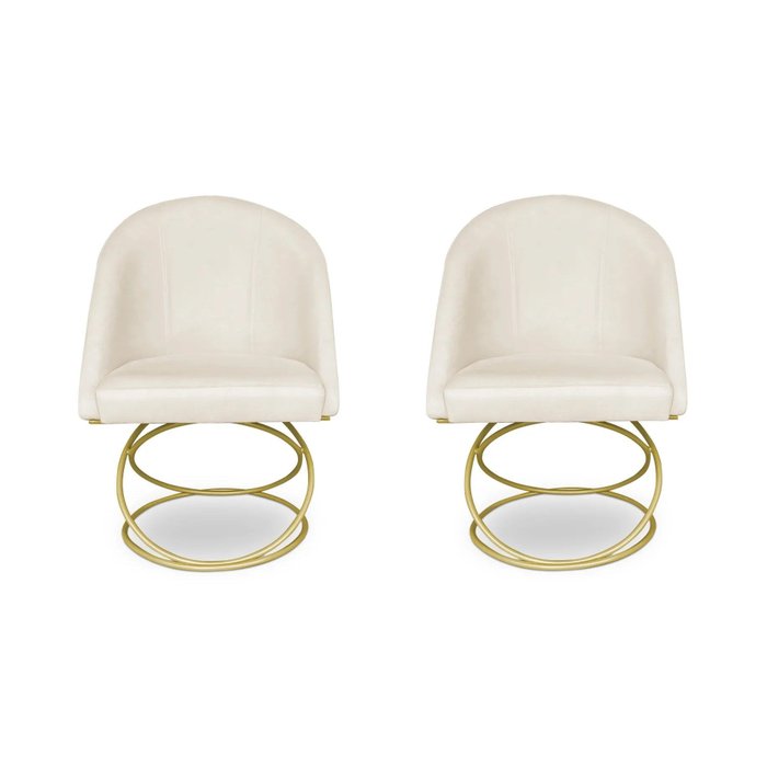 Kit 2 Poltronas Cadeiras De Jantar Luxo Estofada Base Metal Dourado Sala Cozinha Recepção Suede Off