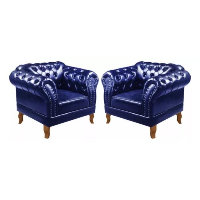 Kit 2 Poltronas Chesterfield Dom Pedro Vintage Retrô Capitonê Couro Azul Azul