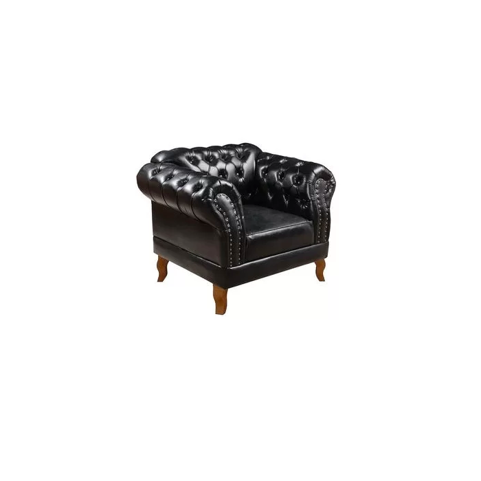 Kit 2 Poltronas Chesterfield Duque Capitonê Courino Preto Preto
