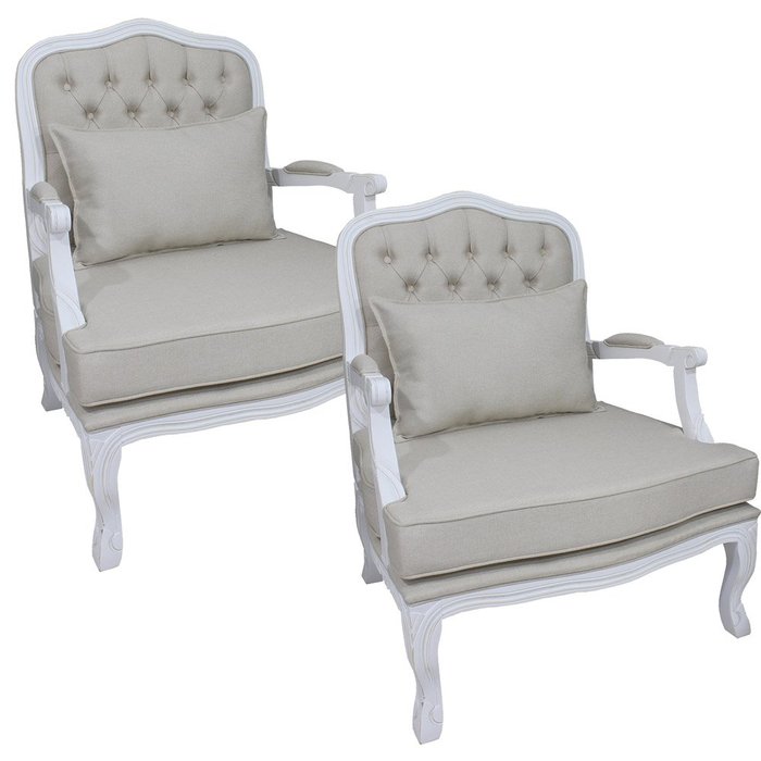 Kit 2 Poltronas Clássica King Entalhada Capitonê Branco Provençal e Linho Bege Soberati Poltrona Clá