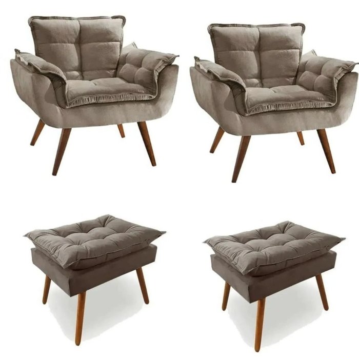 Kit 2 Poltronas com 2 Puff Decorativa Opala Platinum Decor Capuccino