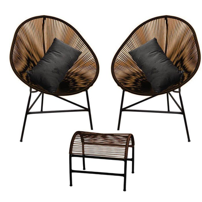 Kit 2 Poltronas Com Puff Acapulco Plus área Externa Fibra Marrom E Almofada Corino Cinza - Ahazzo Móveis