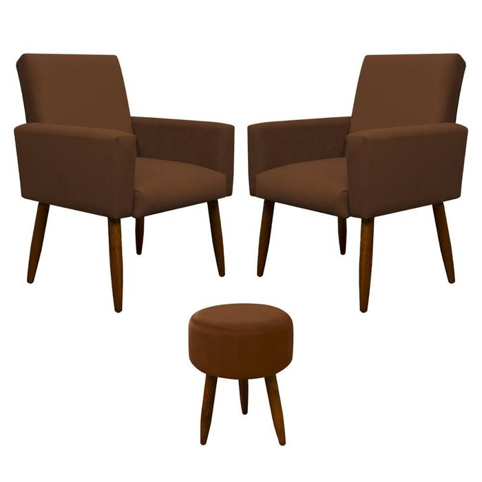 Kit 2 Poltronas com Puff Redondo para Sala Nina Marrom Escuro