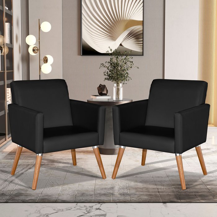 Kit 2 Poltronas Corino Sala, Recepção Escritório Consultório:preto Corino Preto Corino