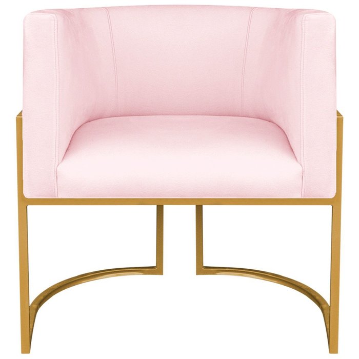 Kit 2 Poltronas Dália Luxo Moderna Estofada Design Sofisticado com Base de Ferro Dourado Suede Rosa Bebê