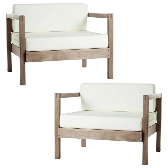 Kit 2 Poltronas de Varanda Gourmet Madeira Maciça com Almofada 1 Lugar Lyza M02 Nogueira - Mpozenato