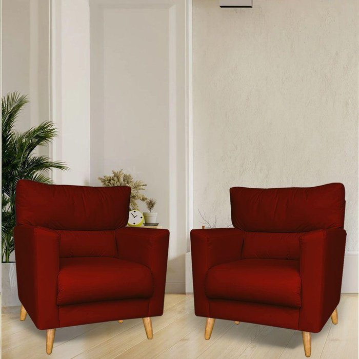 Kit 2 Poltronas Decorativa Angel Suede Bordô Vermmelho