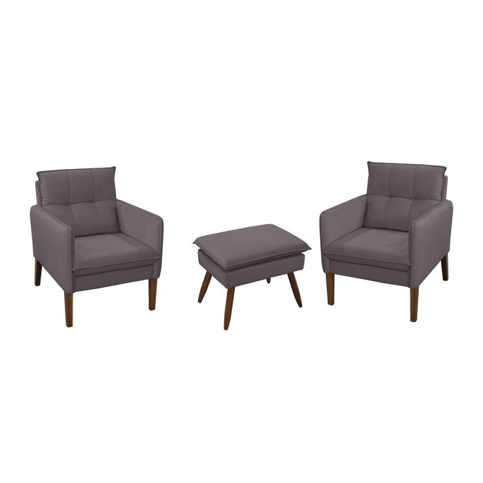 Kit 2 Poltronas Decorativa Electra Sala Recepção e Puff Alê Pés de Madeira Linho Grafite Ec Móveis Grafite