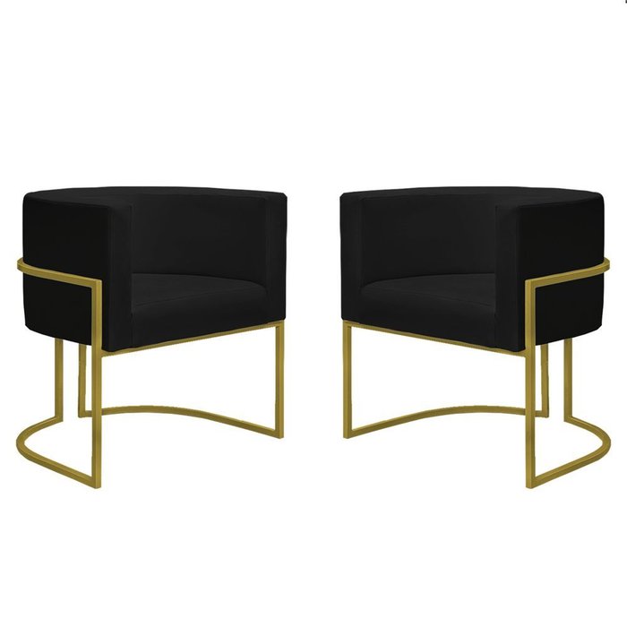 Kit 2 Poltronas Decorativa Nayara Base Ferro Dourado Twdecora Suede Preto
