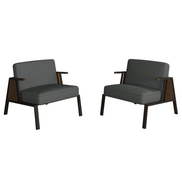 Kit 2 Poltronas Decorativa Newark Preto/imbuia/cinza - M. Arapongas Preto Fosco/imb/suede Cinza
