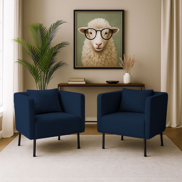 Kit 2 Poltronas Decorativa Pés de Metal Hanna Veludo Azul - Loja Sheep