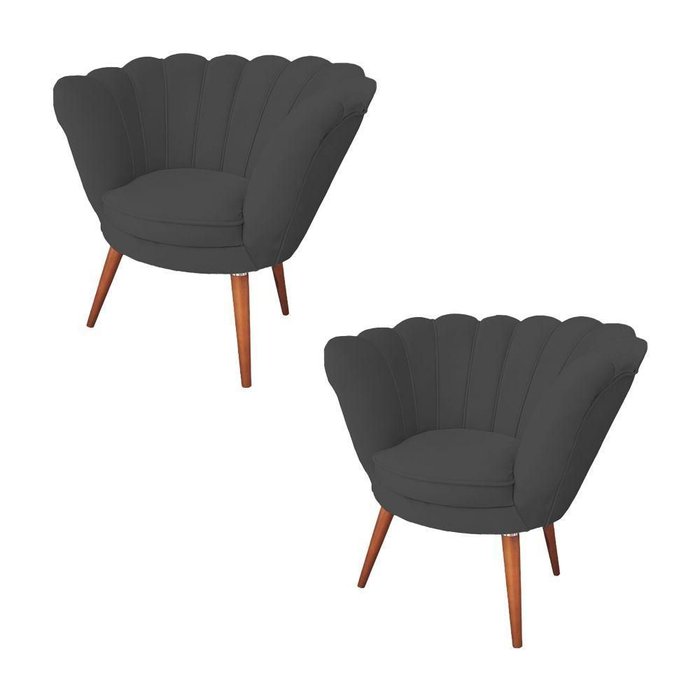 Kit 2 Poltronas Decorativa Pétala Clínicas E Base Madeira Maciça Estofado Veludo Grafite - Cinza