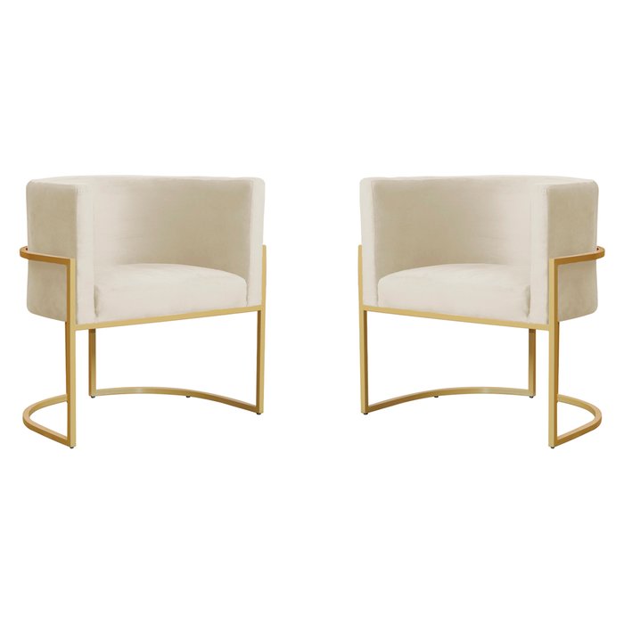 Kit 2 Poltronas Decorativa Sala de Estar Luana Base Gold Veludo Bege - Montanaris Decor Md Montanari