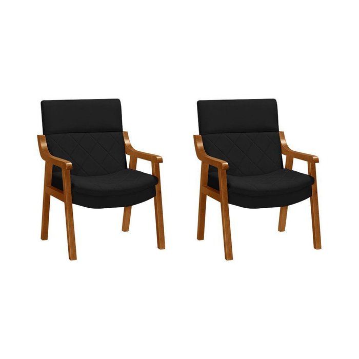 Kit 2 Poltronas Decorativa Zara Prime Veludo Preto Base Em Madeira Maciça - Cor: Preto