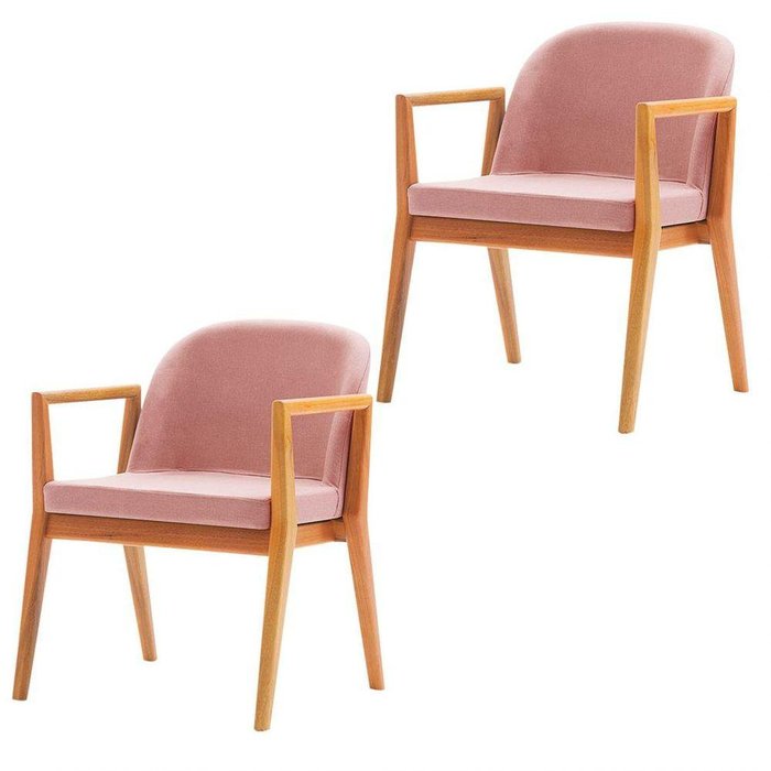 Kit 2 Poltronas Decorativas Base Em Madeira Tauari Mochi Linho Coral - Gran Belo Rosa
