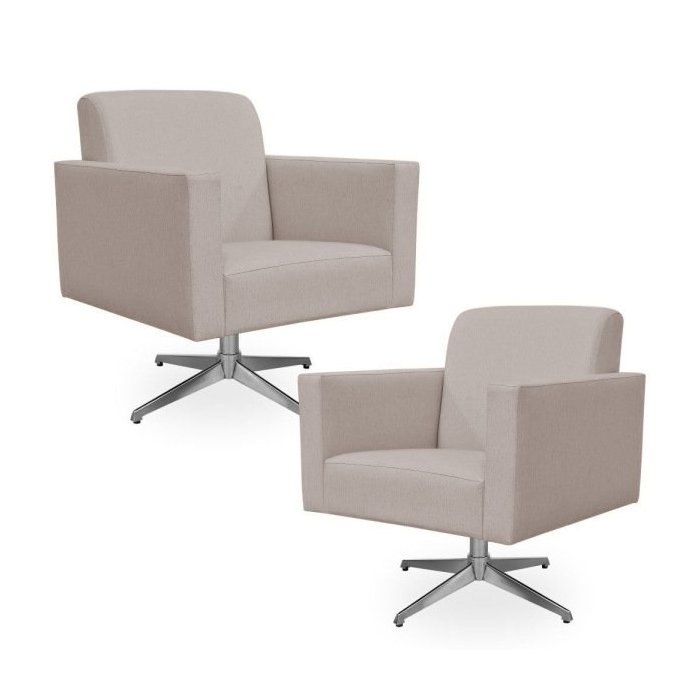 Kit 2 Poltronas Decorativas Base Giratória para Helô Linho Bege - Lyam Decor Bege