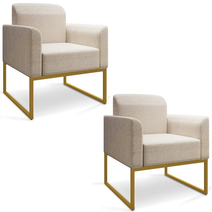 Kit 2 Poltronas Decorativas Base Industrial Dourada Maressa A27 Linho Areia - Ibiza