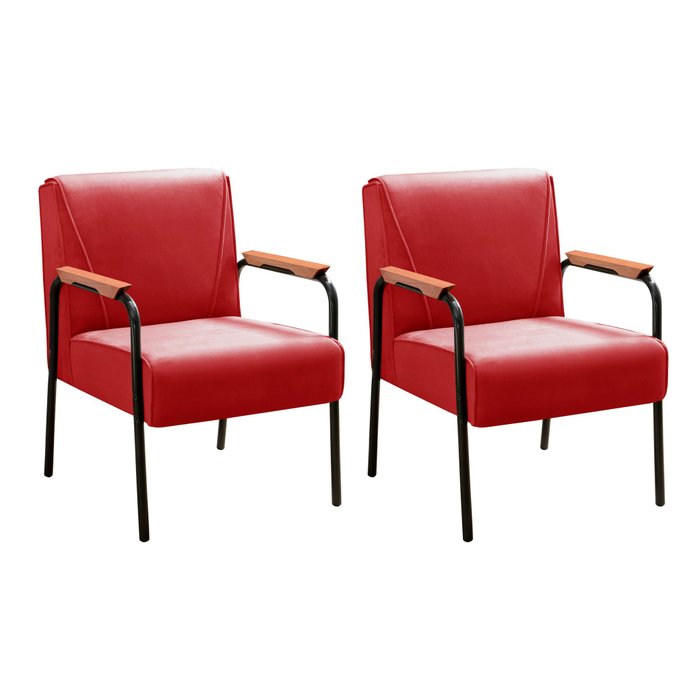 Kit 2 Poltronas Decorativas Jade Braços Fixo Vermelho