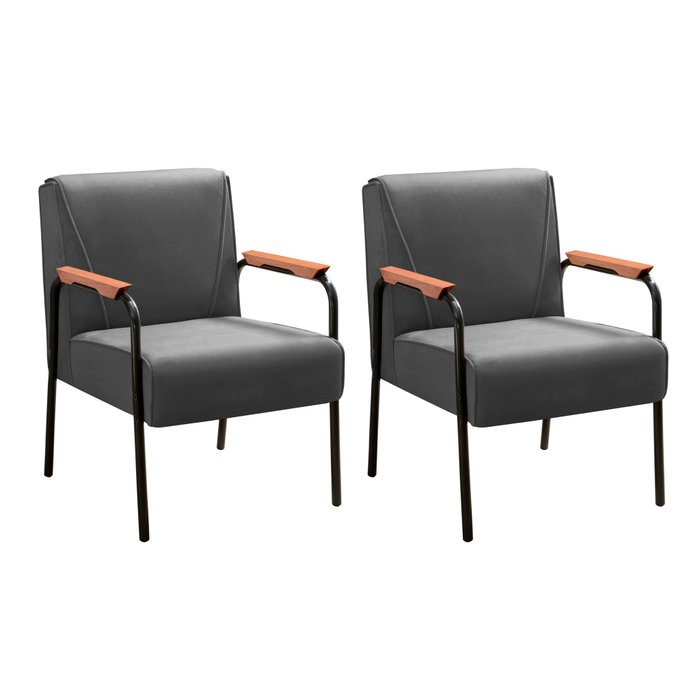 Kit 2 Poltronas Decorativas Jade Braços Fixo Cinza Grafite