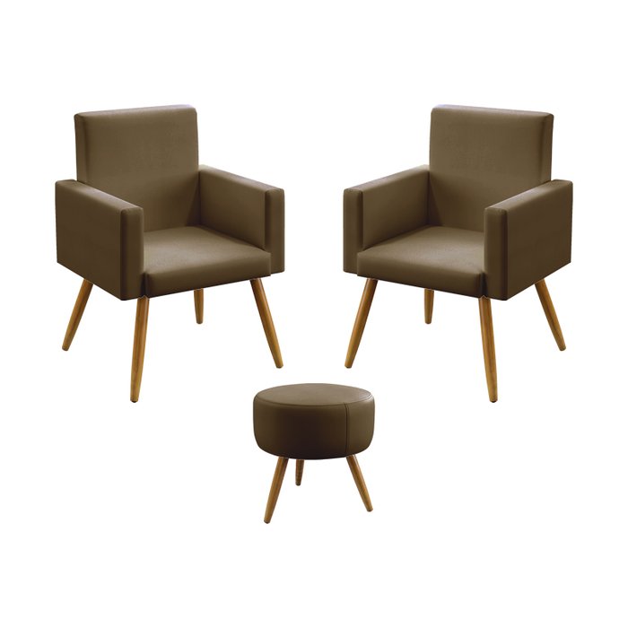Kit 2 Poltronas Decorativas Nina Com Puff Solar Para Sala de Estar Sued Capuccino Aradecor Capuccino