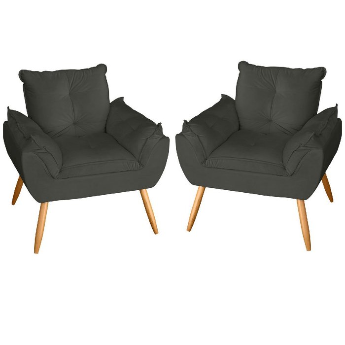 Kit 2 Poltronas Decorativas Opala Suede Cinza MV Estofados