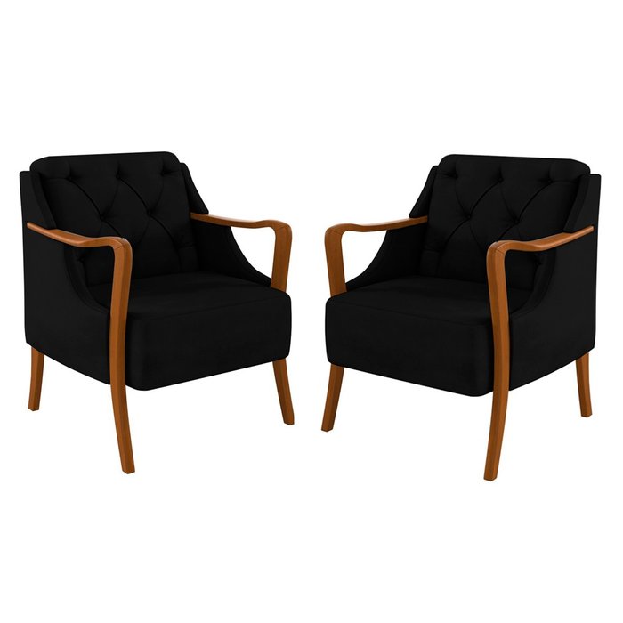 Kit 2 Poltronas Decorativas para Sala de Estar Capitonê Lapa M22 Veludo Preto - Mpozenato