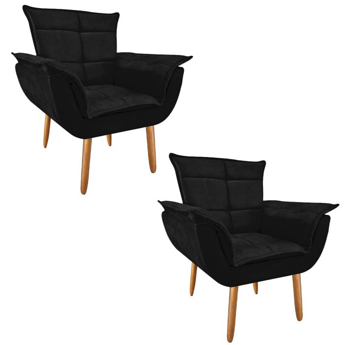 Kit 2 Poltronas Decorativas para Sala de Estar Opala Las Vegas Suede Amo Estofados:Preto Preto