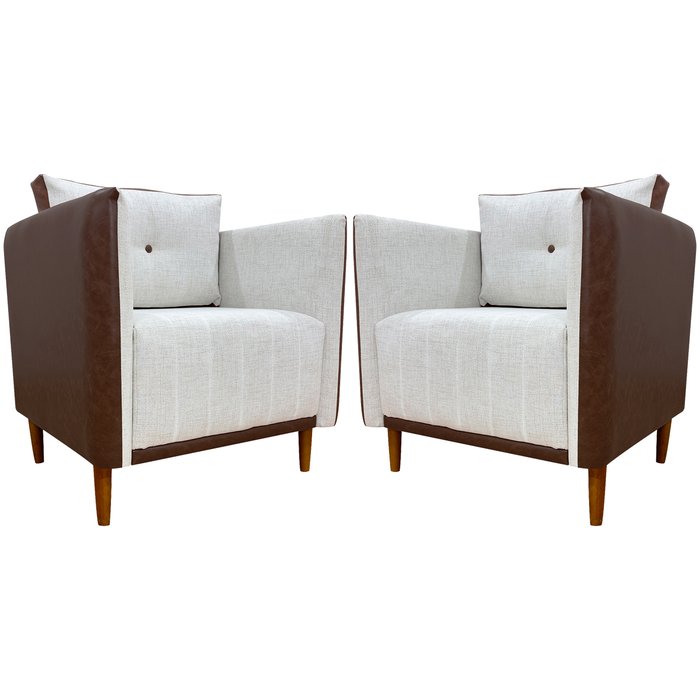 Kit 2 Poltronas Decorativas para Sala e Recepção Aviv Corino e Linho Premium Cores