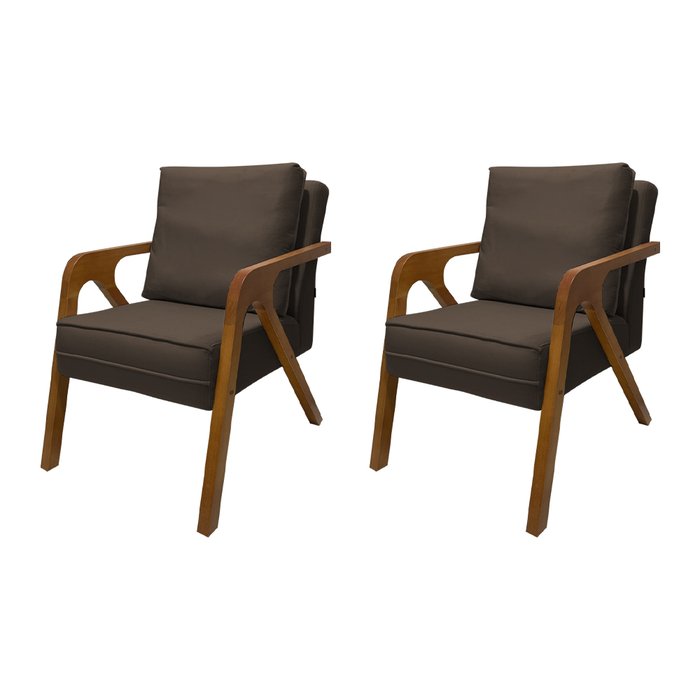 Kit 2 Poltronas Decorativas Pés em Madeira Maciça Monaco Veludo Marrom