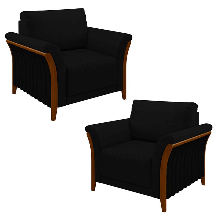 Kit 2 Poltronas Decorativas Sala de Estar 102cm Pés Madeira Roya M22 Veludo Preto - Mpozenato