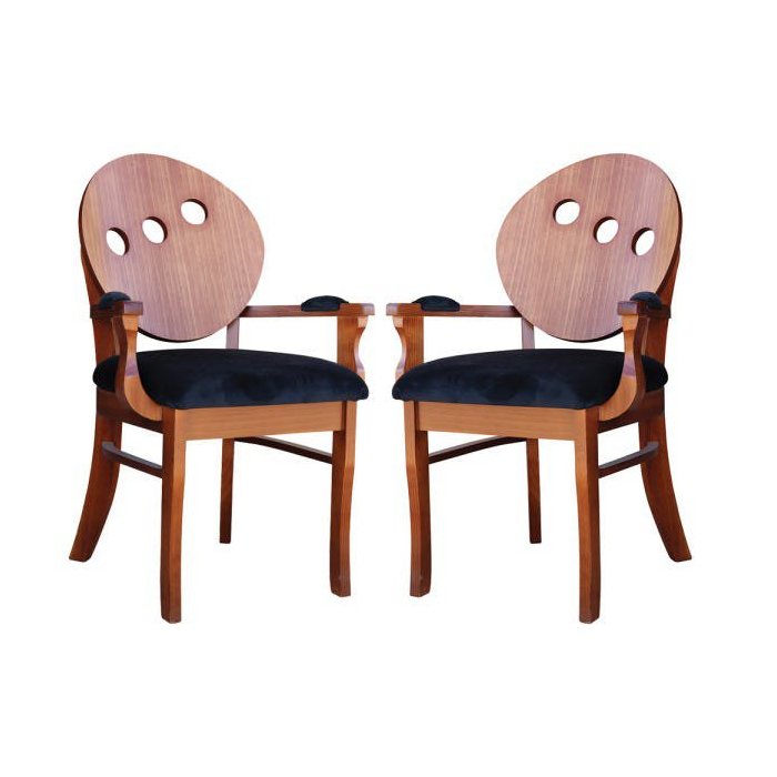Kit 2 Poltronas Decorativas Sala de Jantar Teseu Madeira Maciça Poliéster Preto/Imbuia - Gran