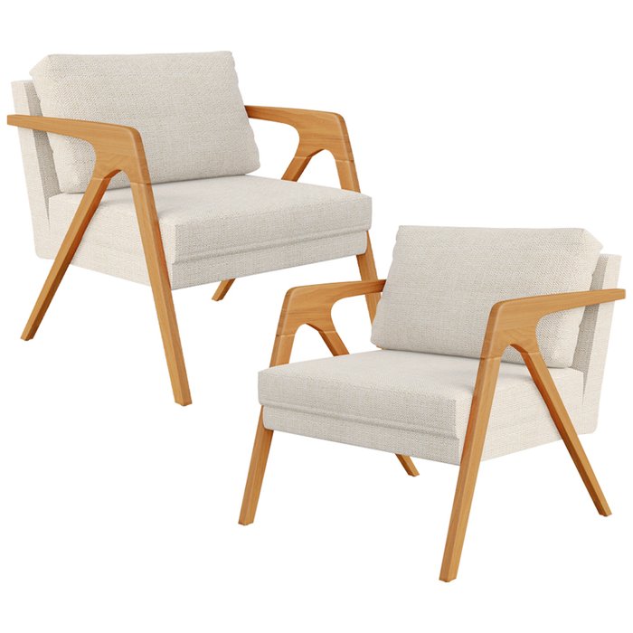 Kit 2 Poltronas Decorativas Sala Estar Pietra Estrutura de Madeira L02 Linho Champanhe - Lyam
