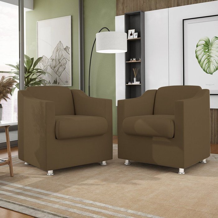 Kit 2 Poltronas Decorativas Tilla Consultório Recepção Sala Suede Cor:marrom Marrom