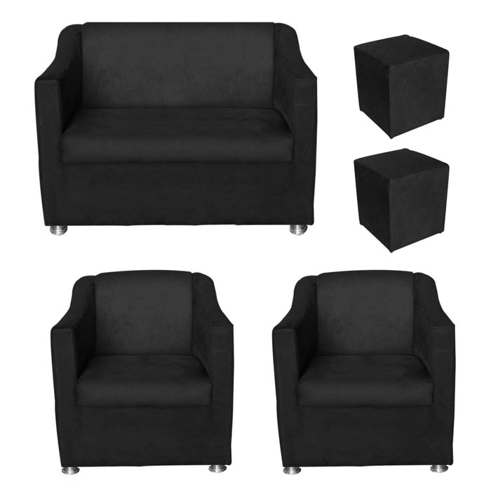 Kit 2 Poltronas e 1 Namoradeira Tilla e 2 Puffs Dado Corino Preto - Móveis Mafer