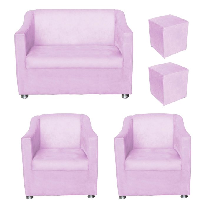 Kit 2 Poltronas e 1 Namoradeira Tilla e 2 Puffs Dado Corino Rosa Bebê - Móveis Mafer