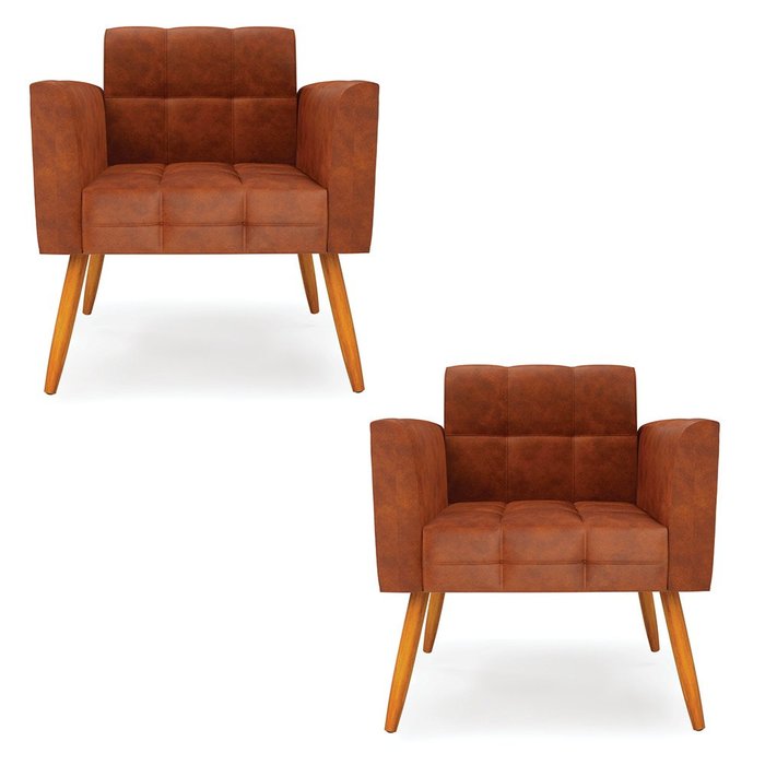 Kit 2 Poltronas Elisa Corano Pés Palito Castanho - D'Rossi DRossi Nozes