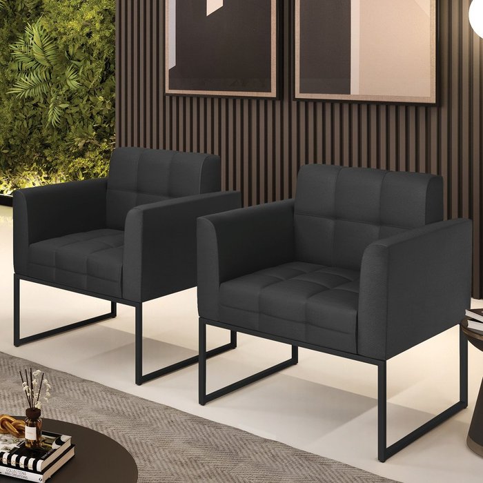 Kit 2 Poltronas Elisa Corino Base Metálica Industrial Preto - D'rossi