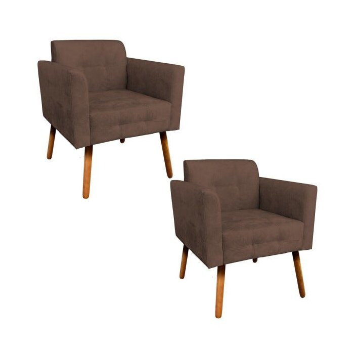 Kit 2 Poltronas Elisa Suede Craquelado Marrom Pés Palito D'Rossi