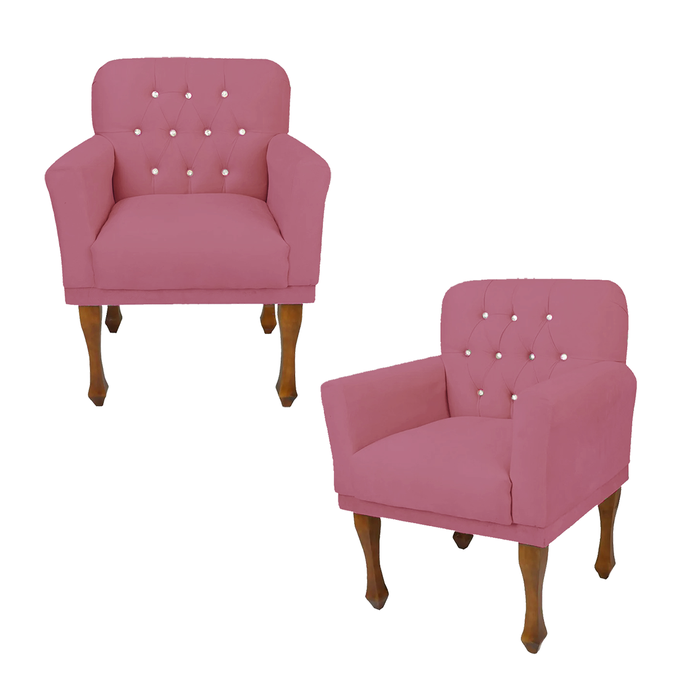 Kit 2 Poltronas Estofada Decorativa Salão Anitta Suede Rosa Barbie Dl Decor